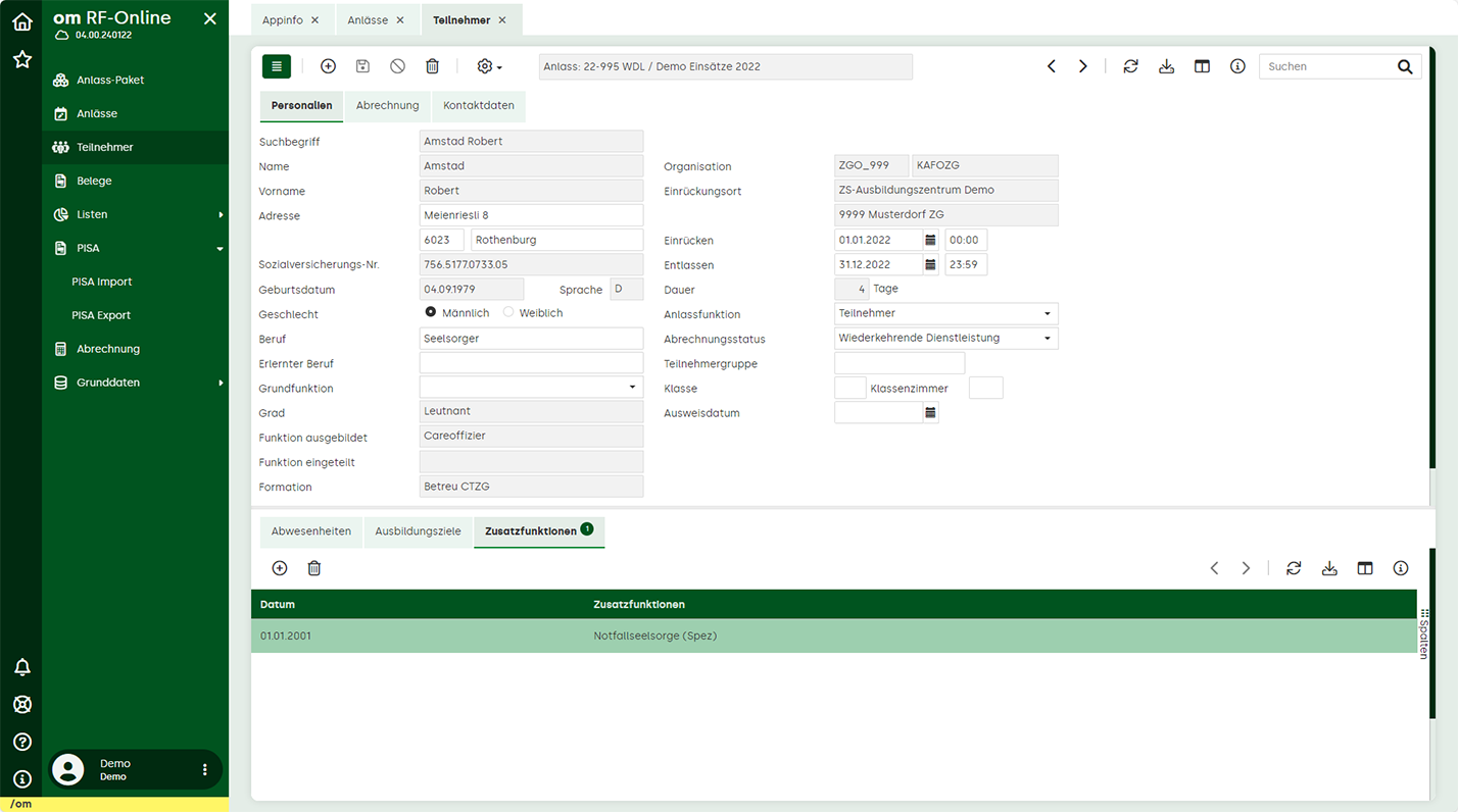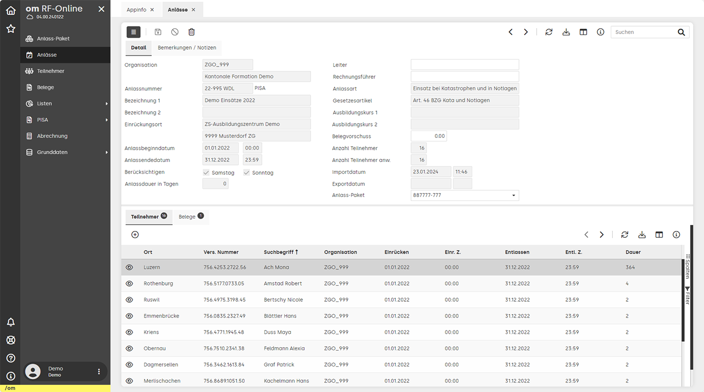 om RFonline ist die beliebte und etablierte Lösung für die Anlassabrechnung. Nach dem Import der Pisa-Anlässe bearbeiten die Rechnungsführer die Anlass- und Abrechnungsdaten einfach und schnell.