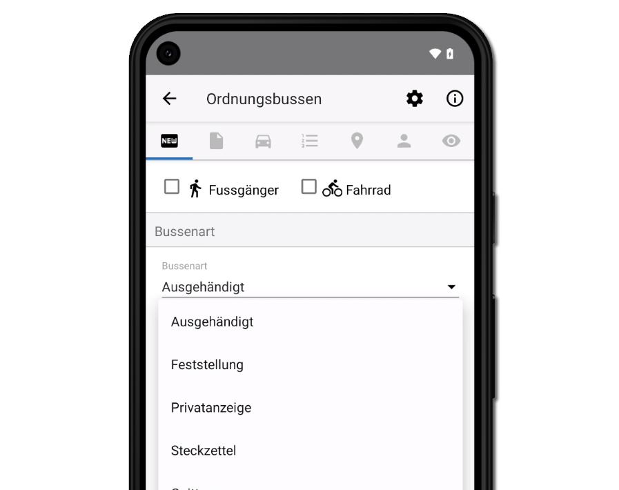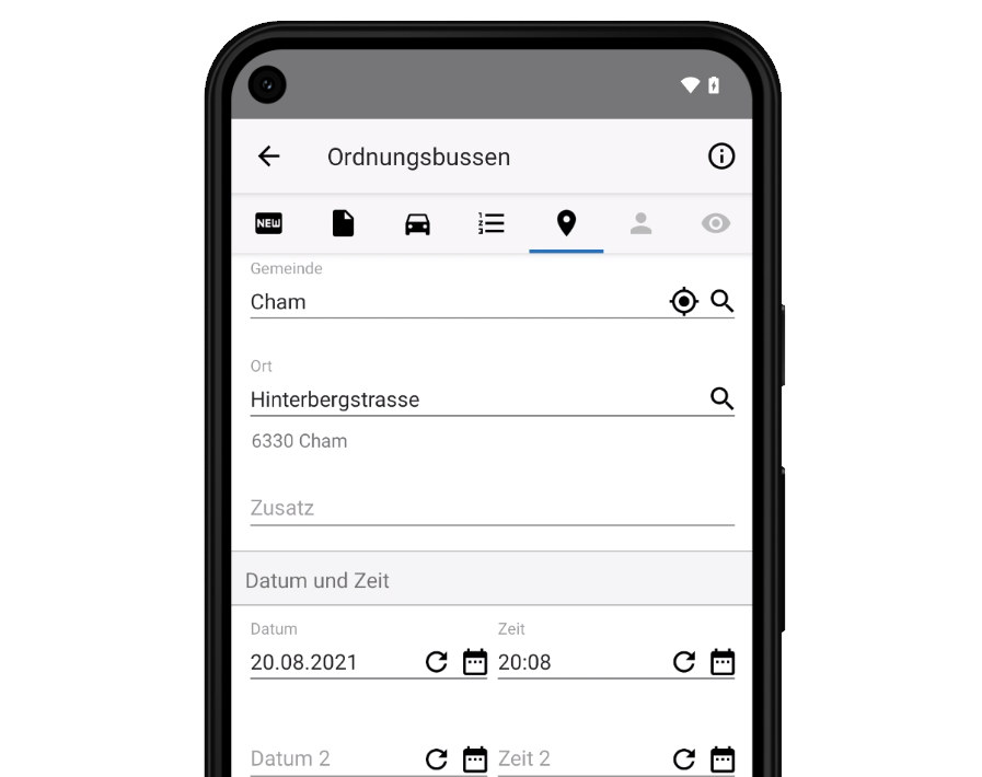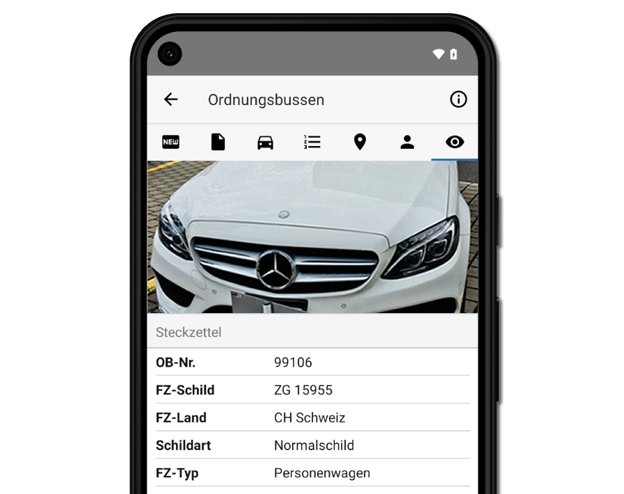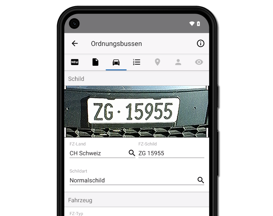 Die Übertretung wird auf dem Smartphone oder Tablet erfasst und der Fall optional mit Fotos dokumentiert.