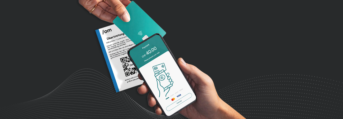 Mit Tap on Mobile wickeln die Kontrollorgane Zahlungen schnell, kontaktlos und ohne zusätzliches Zahlterminal ganz einfach auf ihrem iPhone oder Android Gerät ab. Akzeptiert werden die gängigen Zahlungsoptionen wie Visa, Mastercard, TWINT sowie Apple Pay und Google Pay.